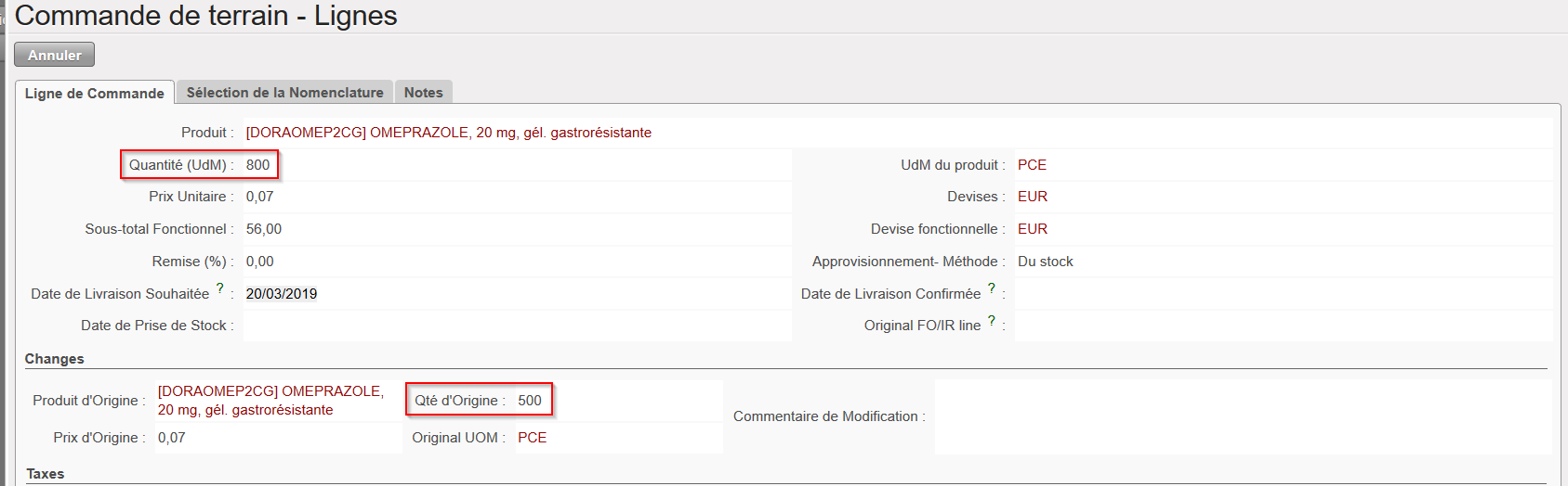 6.4 Si vous connaissez déjà la méthode d’acquisition (du stock/sur commande), vous pouvez mettre à jour le champ “Approvisionnement – Méthode”.