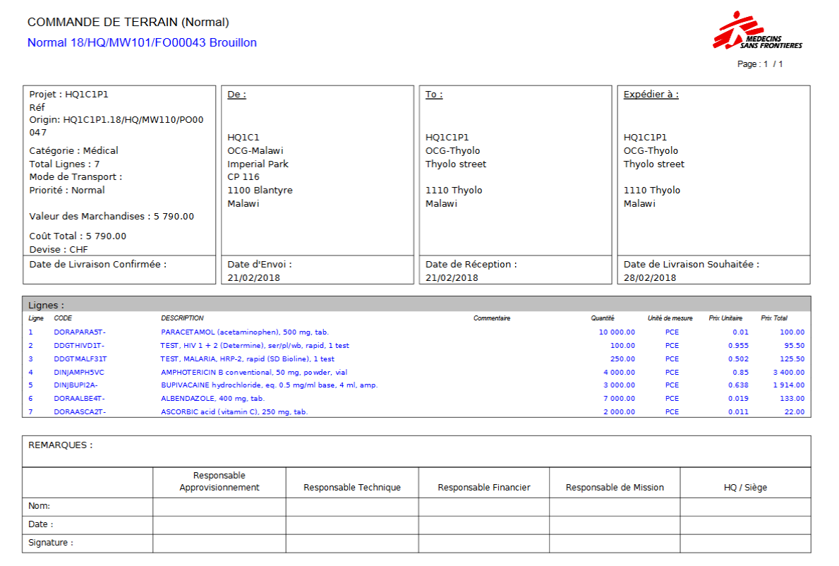 Manuel de l’Utilisateur Supply -> 4. Commandes et Achats -> 4.4 LU-SU3103 COMMANDES: Commandes de Terrains (Field Orders - FOs) -> C. LU-SU3103 Comment créer une Commande de Terrain (FO) manuellement