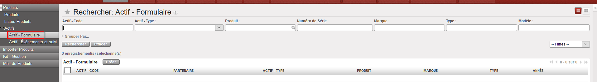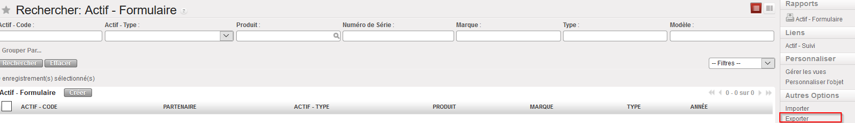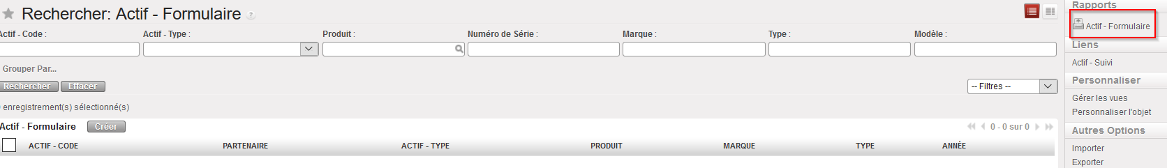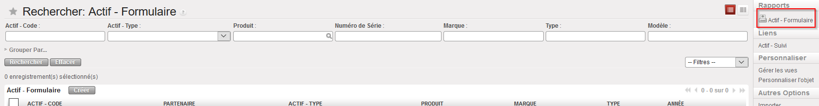 Vue Rechercher : Actifs – Formulaire