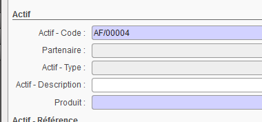 2. Cliquer sur la ligne de l’Actif que vous souhaitez ouvrir. Le formulaire de cet Actif s’ouvre.