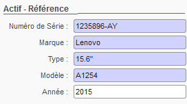 • Sous la rubrique « Actif – Référence », indiquer le Numéro de Série de l’Actif. Il s’agit du numéro du fabricant et il sert à identifier l’Actif physiquement.