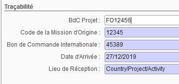 • Sous la rubrique « Traçabilité », entrer la référence du bon de commande de terrain le cas échéant