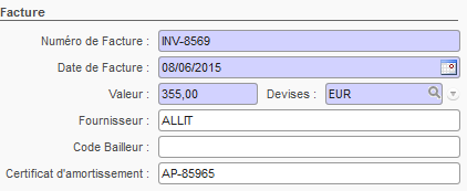 • Entrer la référence du Certificat d’amortissement : cette référence (issue du département des finances) intervient si la valeur du bien doit être dépréciée (voir les règles du département des finances en matière de gestion des biens).