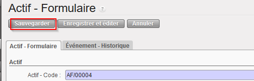 Cliquer sur Sauvegarder pour enregistrer le nouveau formulaire Actif.