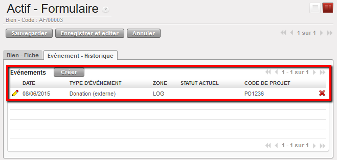 Création d’un évènement (suivi) d’un Actif