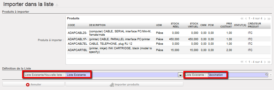 Manuel de l’Utilisateur Supply -> 3. Produits -> 3.4 Produits d'un Catalogue Fournisseur -> C. LU-SU2103 Comment mettre à jour une liste de prix d'un catalogue de produits fournisseur