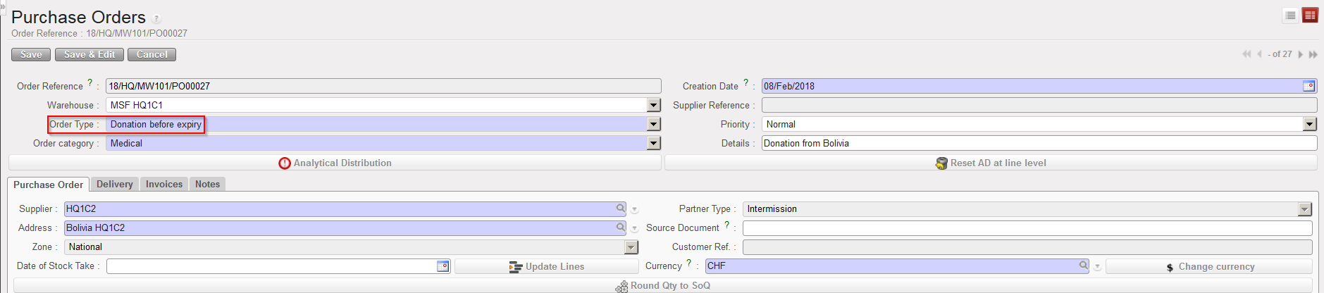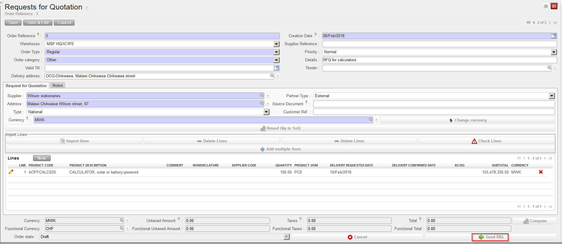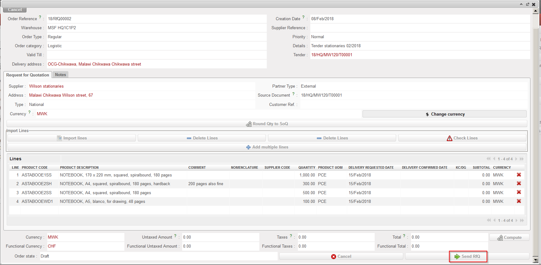 However, to make a spontaneous market analysis (e.g. a review of stationery providers in order to make supplier contracts/agreements), a Tender can be created manually from scratch. Once the Tender process is completed, a PO can be created.