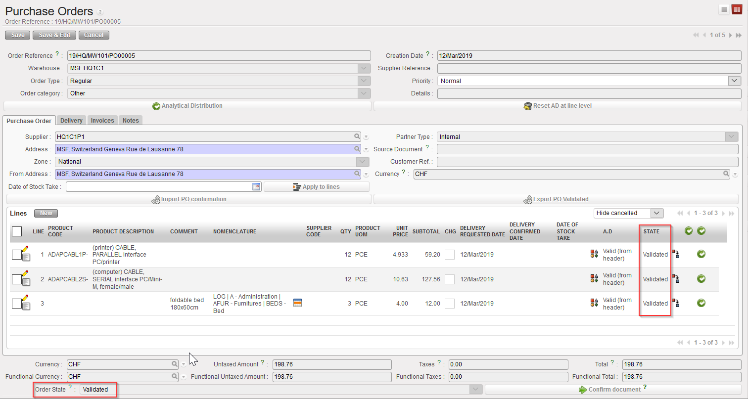 - It is not possible to add lines in requesting instance once a synchronized PO is validated, any change must be in the supplier instance.