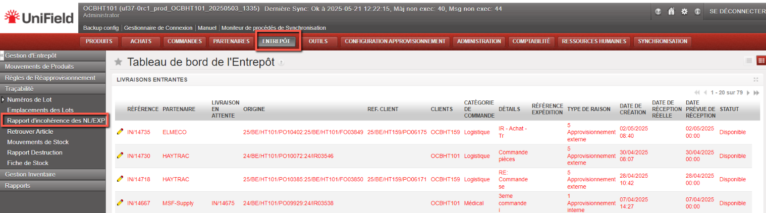 Go to: Warehouse>Traceability>BN/ED Inconsistencies Report