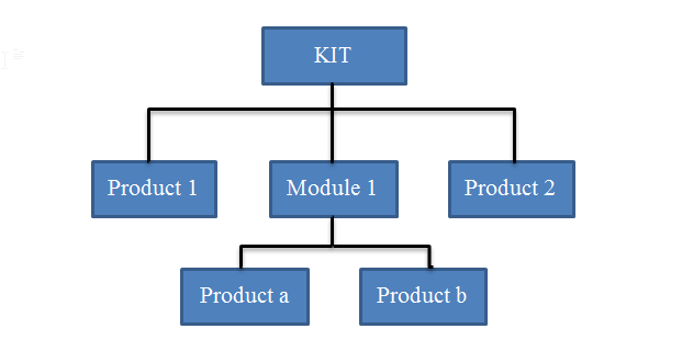 When some products are inter-related, they may be called a module: for example, a laptop and a charger cable may be called a module (i.e. Module 1 showed in the below graph). There may be several modules in a kit.