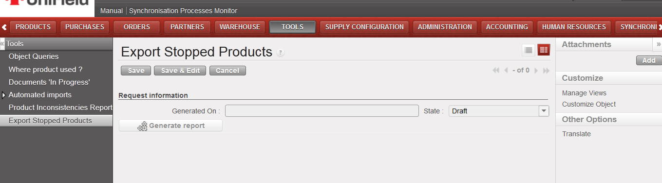 Due to some modifications on Product attributes after a product was already in use, there have been cases where a product has a batch and expiry date existing in stock while the current product does not have these attributes active (or vice versa). Normally this should not be the case, but in order to check where this inconsistency exists, the report BN/ED Inconsistencies Report can be generated for each instance: