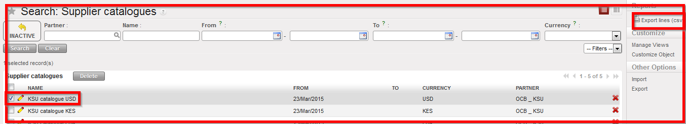 - Use the search tools to filter values to find the product you want to edit (it has to be a product with “Product Creator” = “Local”)