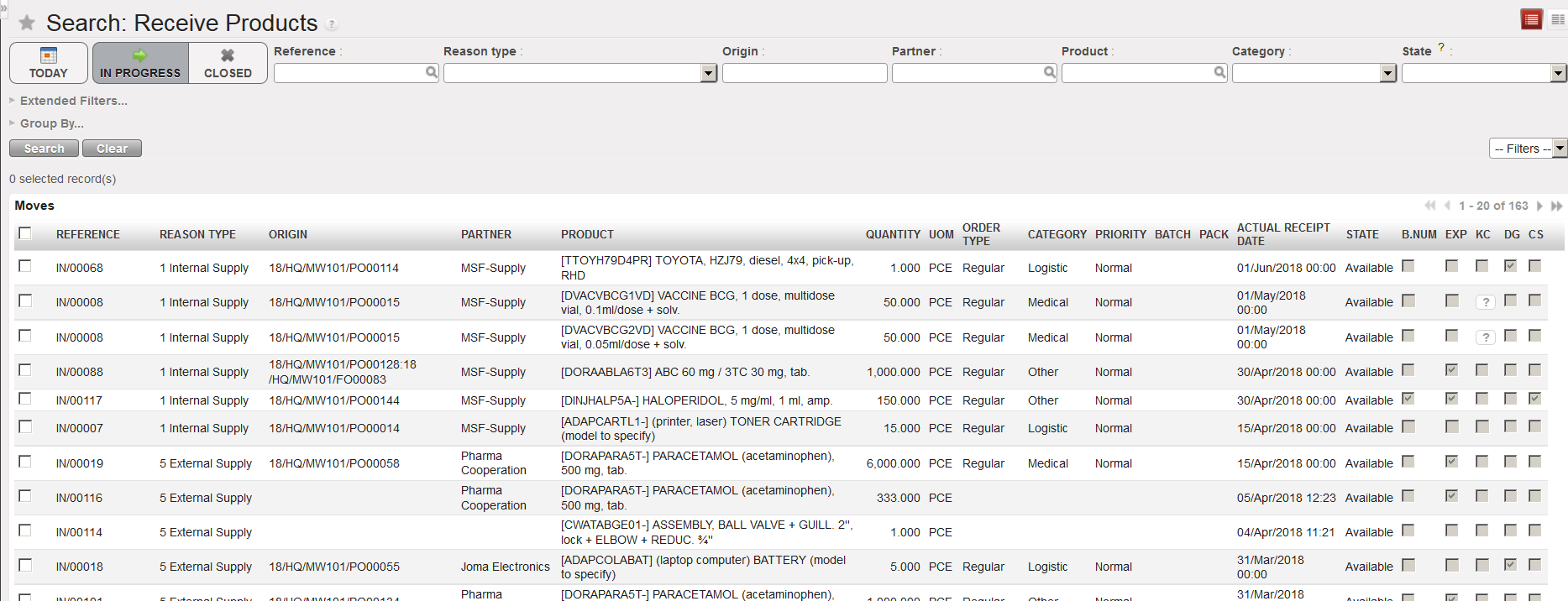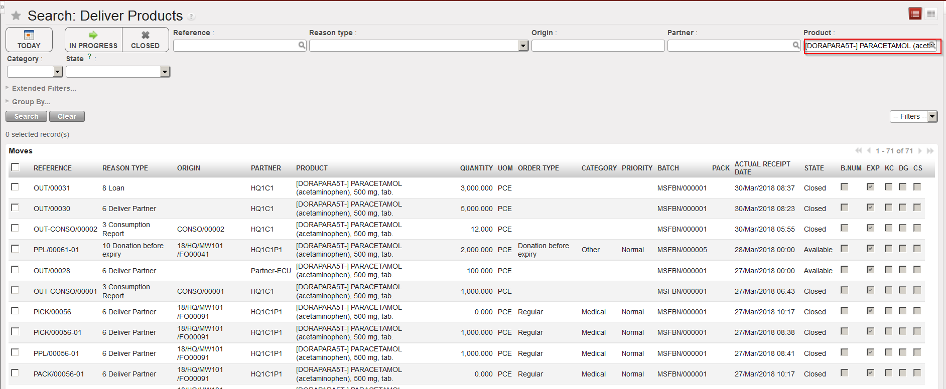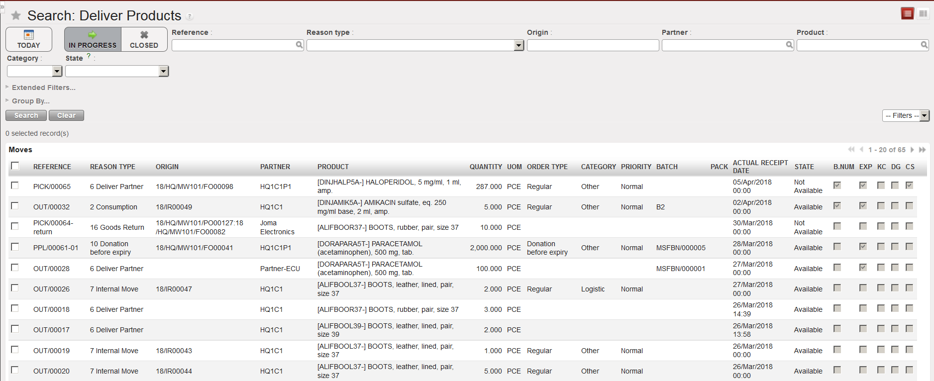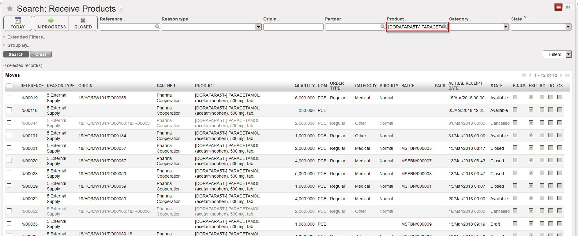 b) Advanced filters such as Partner, Product, Product list, BN or ED can also be used