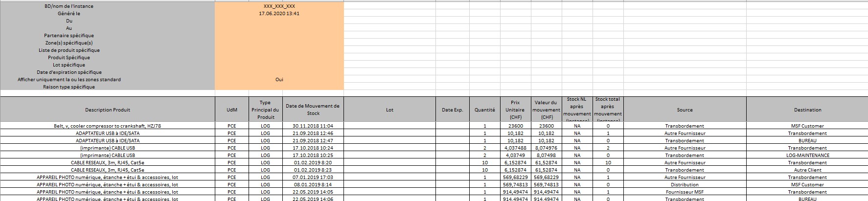 The “IN & OUT Report” (previously named “Export Moves analysis”) is producing a similar report based on several selection criteria but the report is generated in Excel.