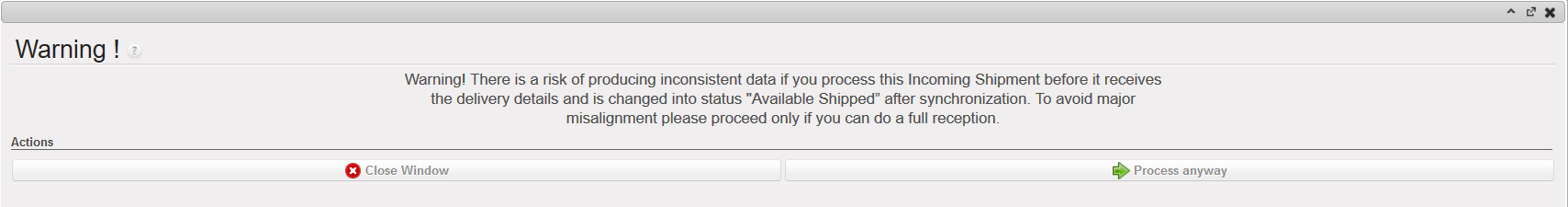 Warning when processing an IN which is not yet in state “Available Shipped“