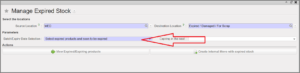 Click on the drop-down menu to get selecting options: “Select expired products” and “Select expired products and soon to be expired”