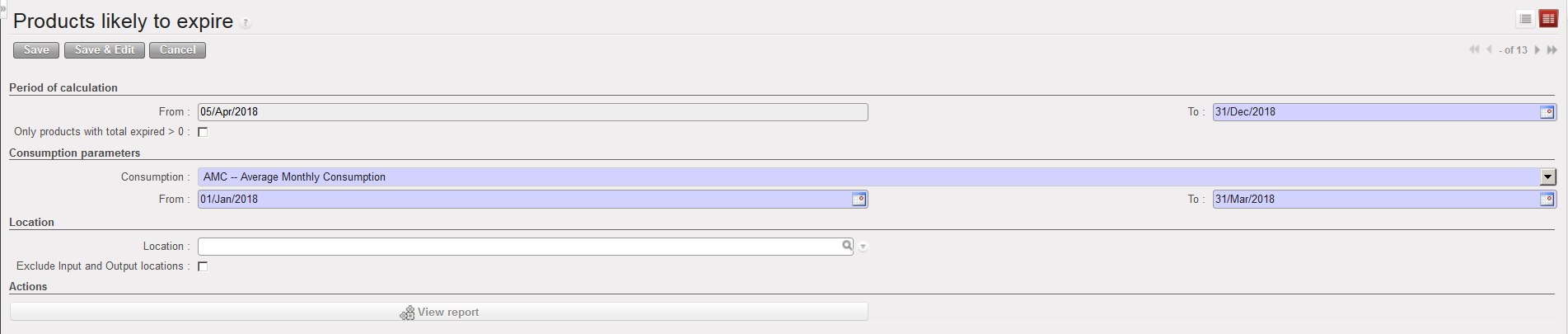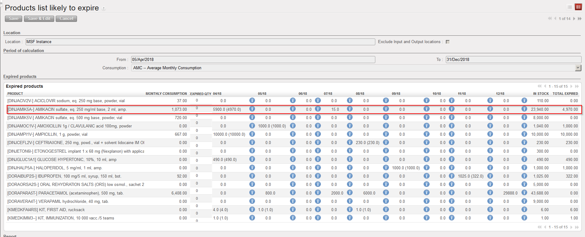 The “Total expired” column shows the quantities which are going to expire between today and the end of the period of calculation (considering that the products will be consumed according to the selected rate).