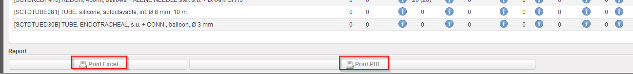 The “Print report PDF” and “Print report Excel” allow to export the report in PDF/Excel.