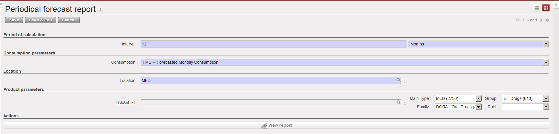 Go to: Warehouse / Reporting / Expiry /Periodical Forecast Report