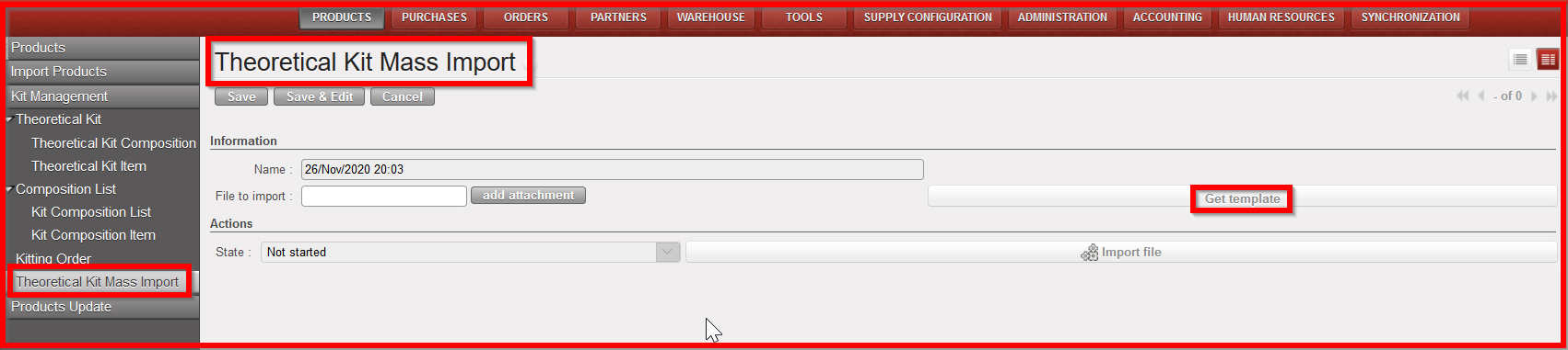Go to: Products/ Kit Management / Theoretical Kit Mass Import