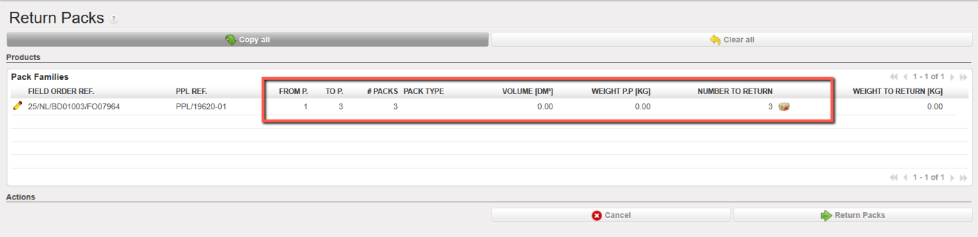 - Click on the “Return Packs to stock…” button at the bottom of the screen.