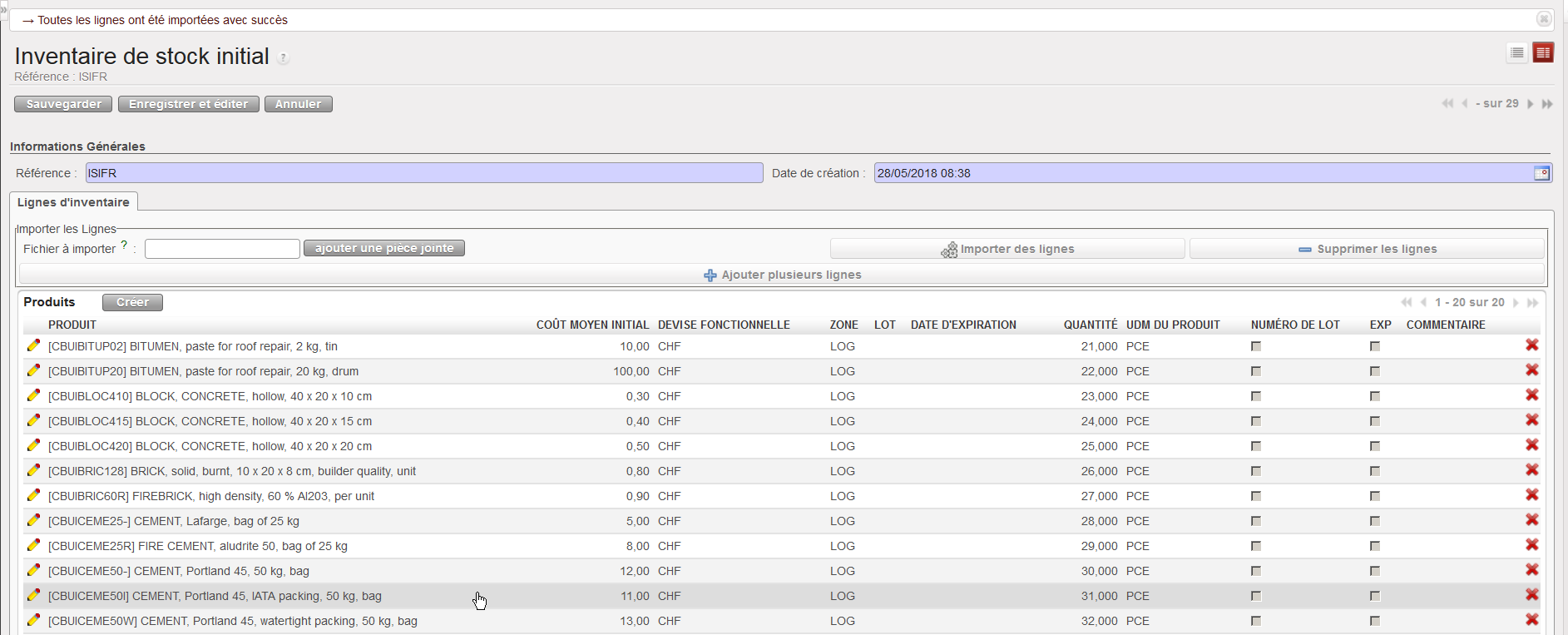 Allez à: Entrepôt / Gestion Inventaire / Inventaire de stock initial