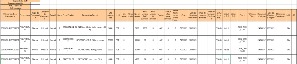 Allez à: Achats / Rapports / Export Suivi BdC