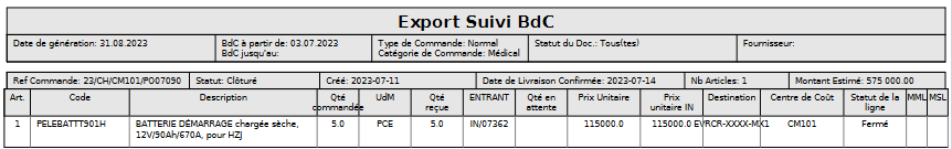 Note : Ce rapport s’appelait auparavant Suivi BdC par Fournisseur.