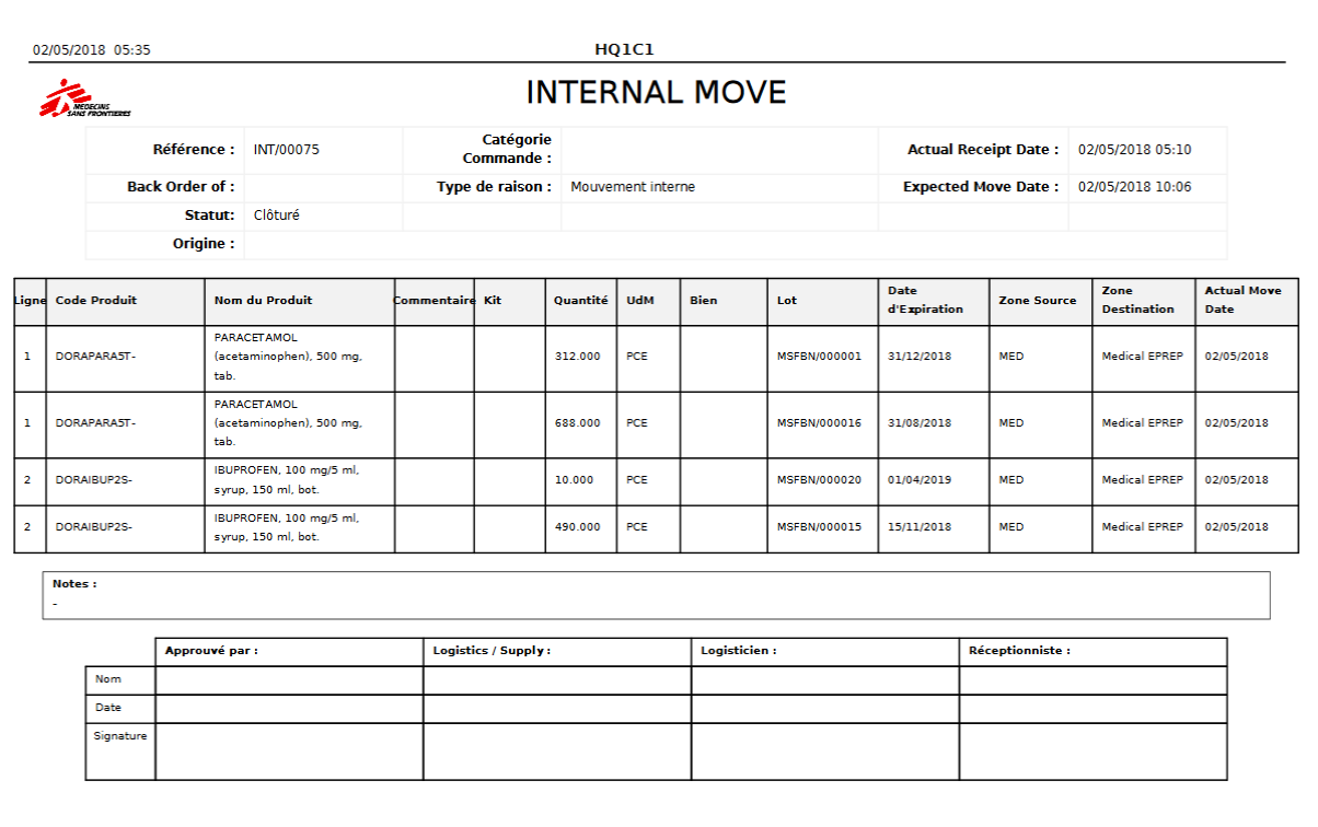 Allez à: Entrepôt / Gestion d’Entrepôt / Mouvements Internes
