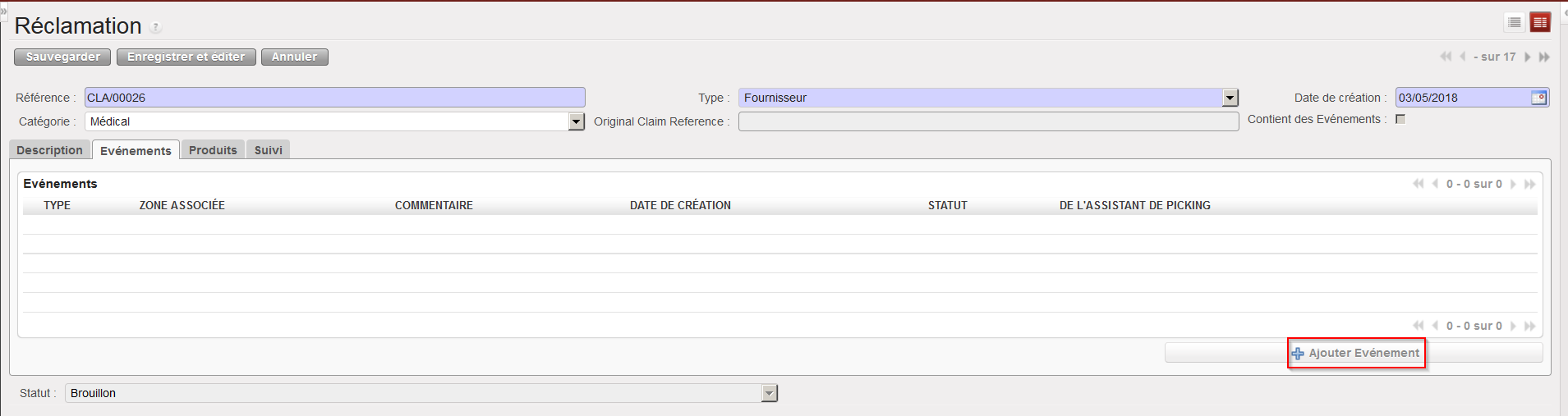 | Ajout d’un événement sur une réclamation |