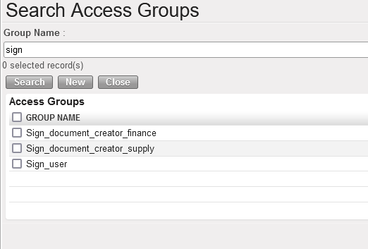 - Sign_document_creator_supply or finance: it opens the “document creator” functionality, on supply or finance objects/report. A document creator is able to select objects he/she has access and invite people to sign them. This access does not allow to apply signature. Drafting signature sample is not needed for a user with this access. This group is provided to supply users/finance users in order to allow them to invite other users to signing on objects and monitor the progression of the signature. It could be combined with Sign_user – in case the user needs to sign.