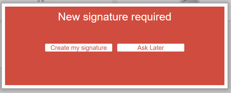 [Inactivate signature] is inactivating the signature at the date and time of system clock. [Create signature] button allows to draft new one if required.