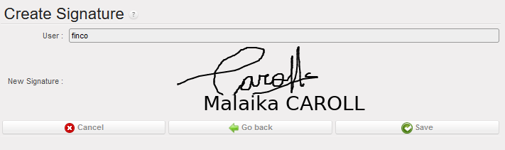 Click on [cancel] to go back to previous screen, or [sign] to apply the signature.