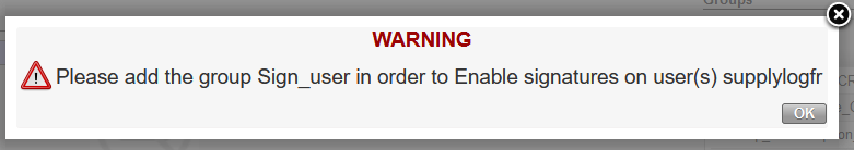 - If the user is allowed to sign, Sign_user group needs also to be added.