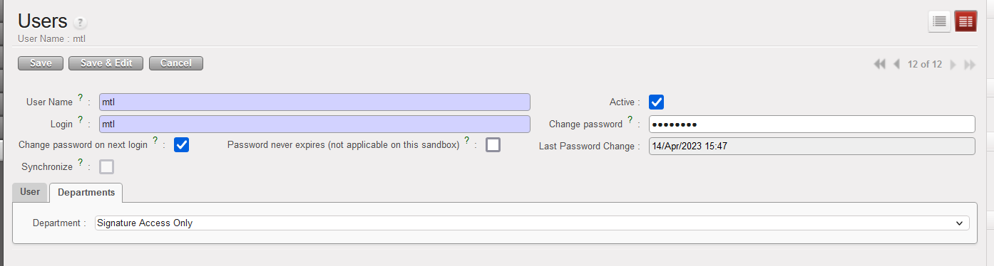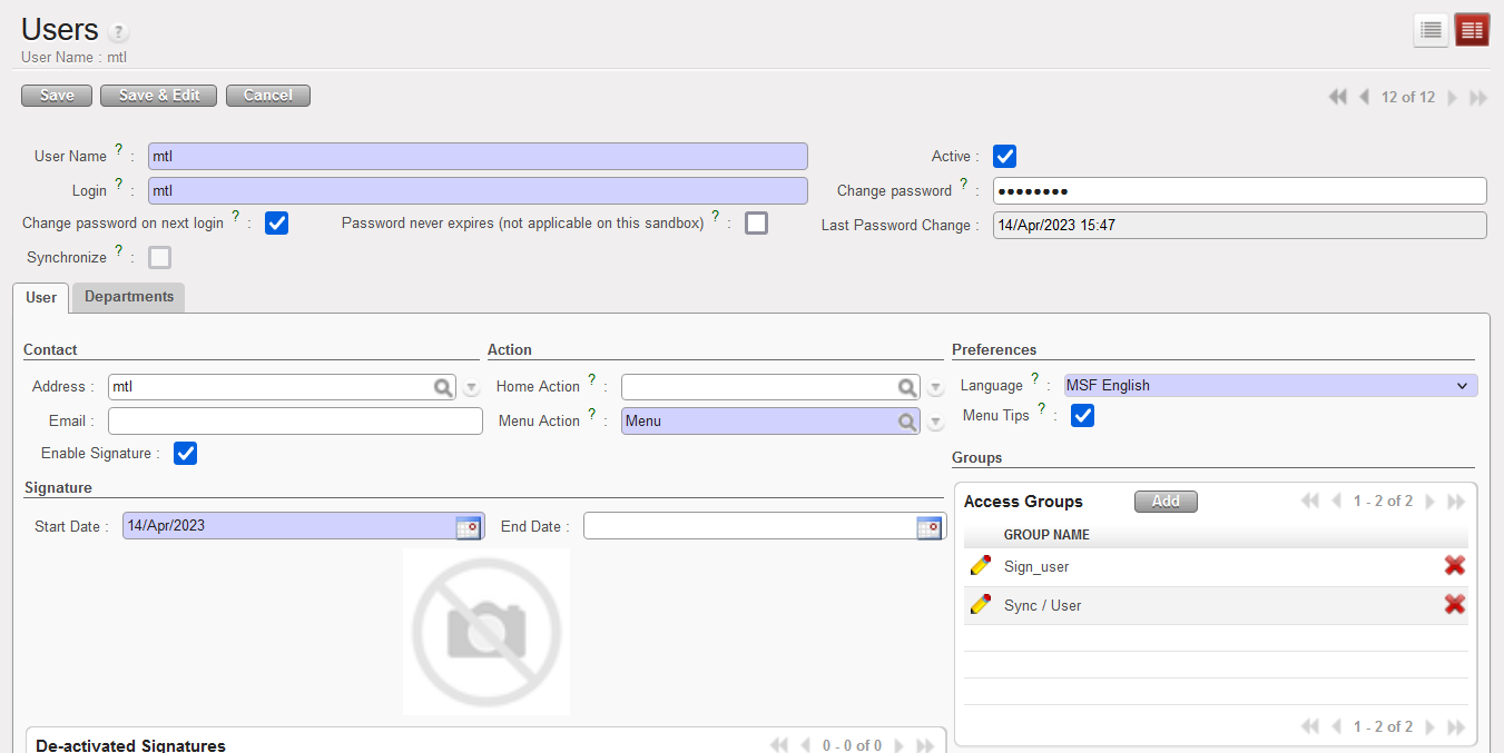 - The user form could not be saved if the next step (add sign_user) is not done. Error message popping up.