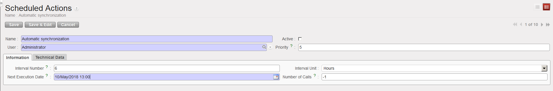 - Tick the “Active” checkbox to activate automatic Synchronization.