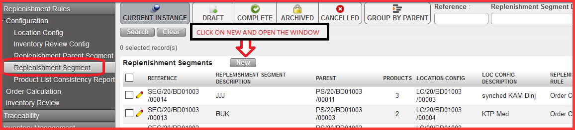 Supply User Manual ENG -> 5. Warehouse -> 5.12 LU-SU4205 Replenishment Rules -> E. HOW TO CREATE A REPLENISHMENT SEGMENT