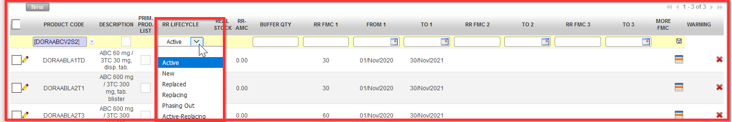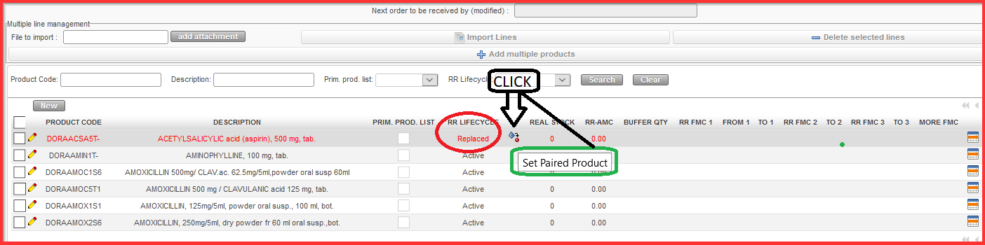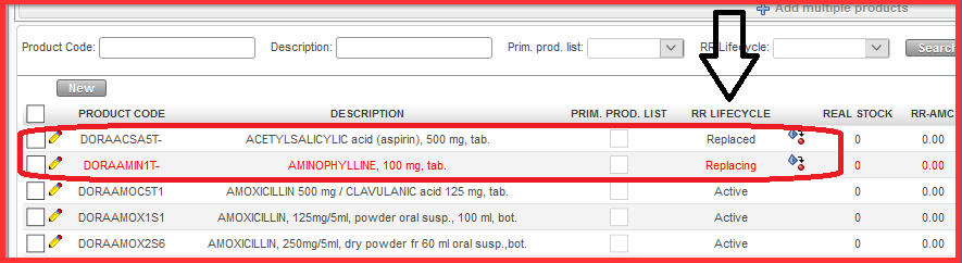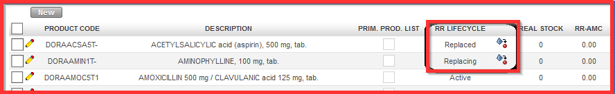 RR Lifecycle “Replaced” and “Replacing” are set up. The second product line is not red highlighted anymore.