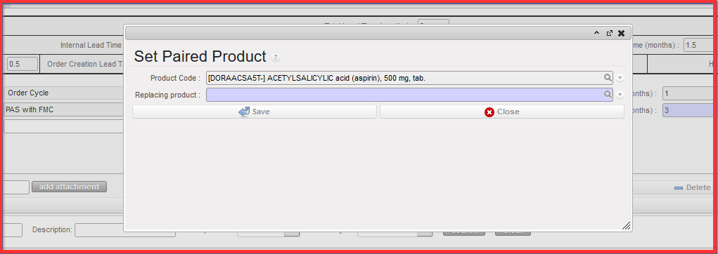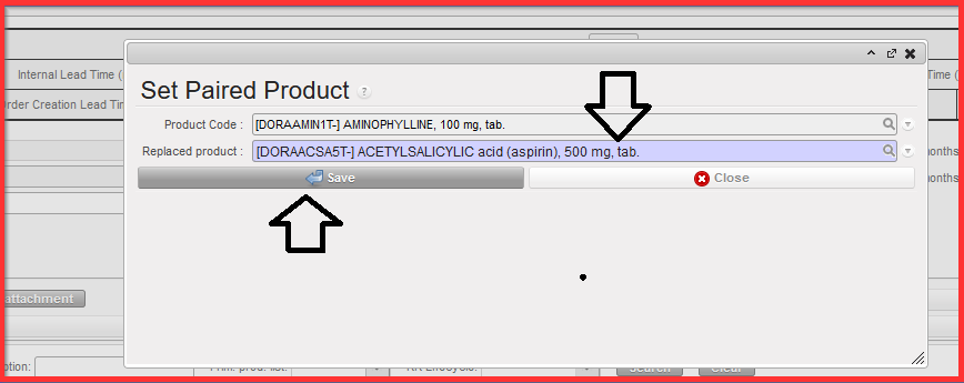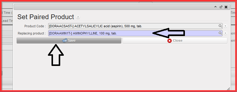 iv.) Click on “Save”. Window is closed, desired replacing product is selected.