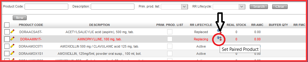 vi.) You must go back to Replacing product and click on “Set Paired Product” icon ![]()