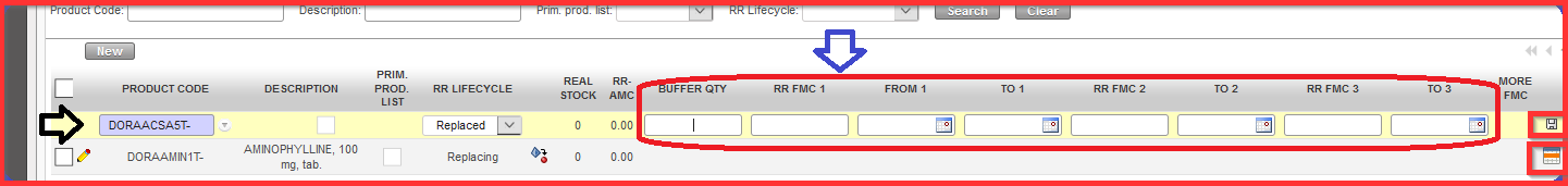 9. Fill in the “RR FMC1” in PCE (SOQ) which is the unit measure of selected product. “RR FMC” columns/fields are only displayed when RR “Order Cycle” has been previously selected.