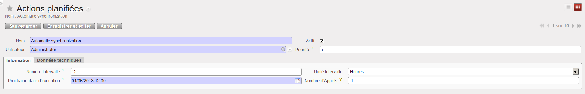 - Cochez la case “Actif” pour activer la synchronisation automatique.