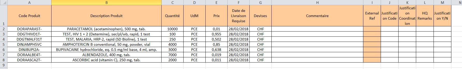 4. Le PO est exporté vers Excel (dans un format similaire à celui utilisé pour l’import de lignes)