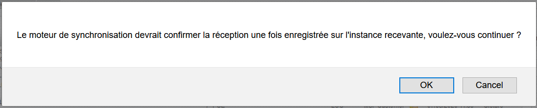 Notez que si vous essayez de confirmer manuellement la livraison d’un Bon de Livraison destiné à une autre instance UniField, vous apercevez le message suivant.