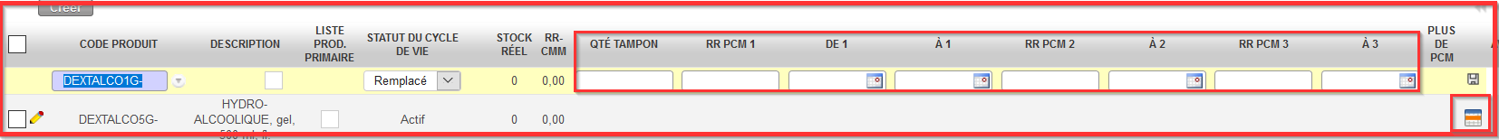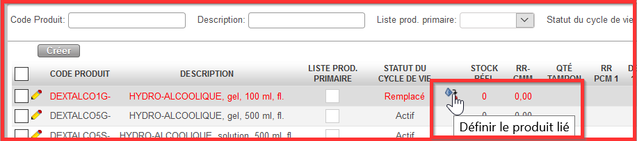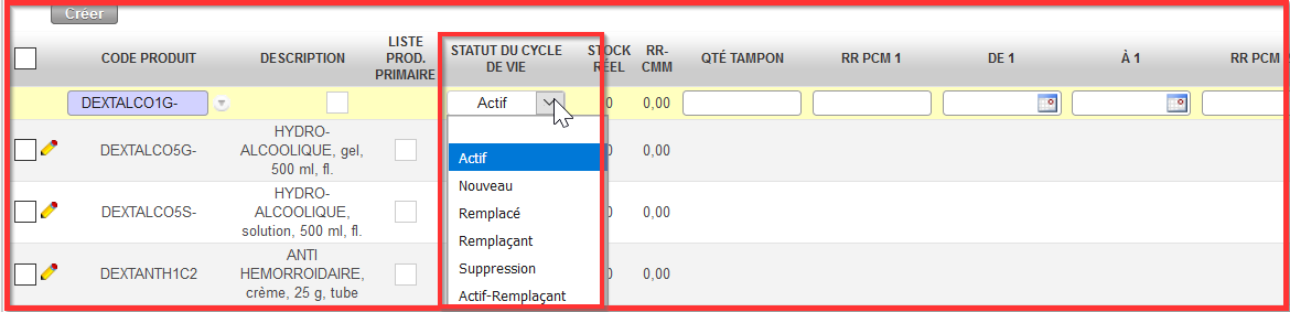 Les statuts du Cycle de vie RR “Remplacé” et “Remplaçant” sont prêts. La deuxième ligne produit n’est plus en rouge.