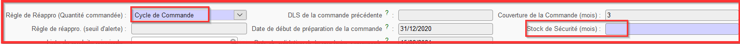 Si vous choisissez “Cycle de Commande” alors une option “Stock de Sécurité” apparait à l’écran UF où l’on doit sélectionner une valeur basée sur la configuration de l’Unité de Temps. Le “Stock de Sécurité” en mois de consommation. Pour le Stock de Sécurité tout comme pour les autres statuts produit, le Délai n’est pas considéré dans ce calcul moyen, seul le temps de Couverture de Commande l’est.