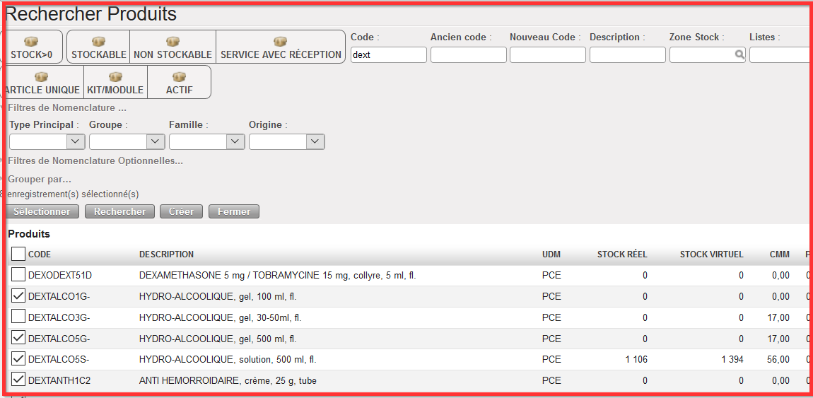 - Cliquer sur “Sauver”. La fenêtre se ferme et le produit désiré est sélectionné.