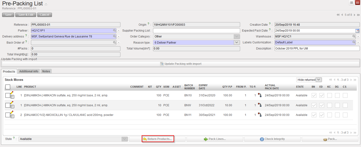 Returning products to stock from a PPL |