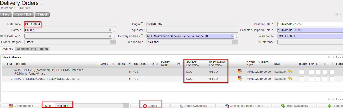 Supply User Manual ENG -> 5. Warehouse -> 5.6 LU-SU4105: Delivery Orders -> H. HOW TO CANCEL AN "OUT"