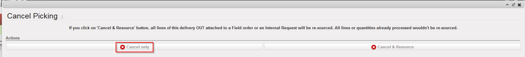 Out Cancellation can result on products being sent to “Cross Docking” location when products have been sourced to a PO from an IR. In order to avoid this, at Cancellation stage, user now have the option to send the goods either to Cross Docking or to proceed to an INTernal Move (automatically created).